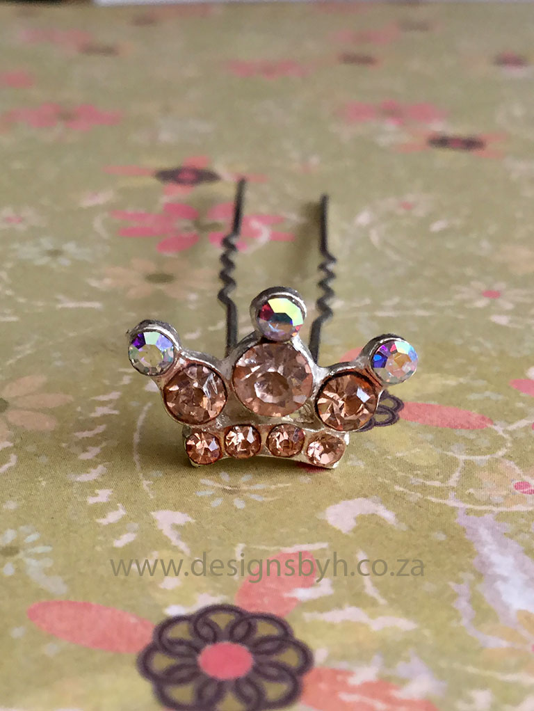 A decorative hair pin with a diamante tiara head.